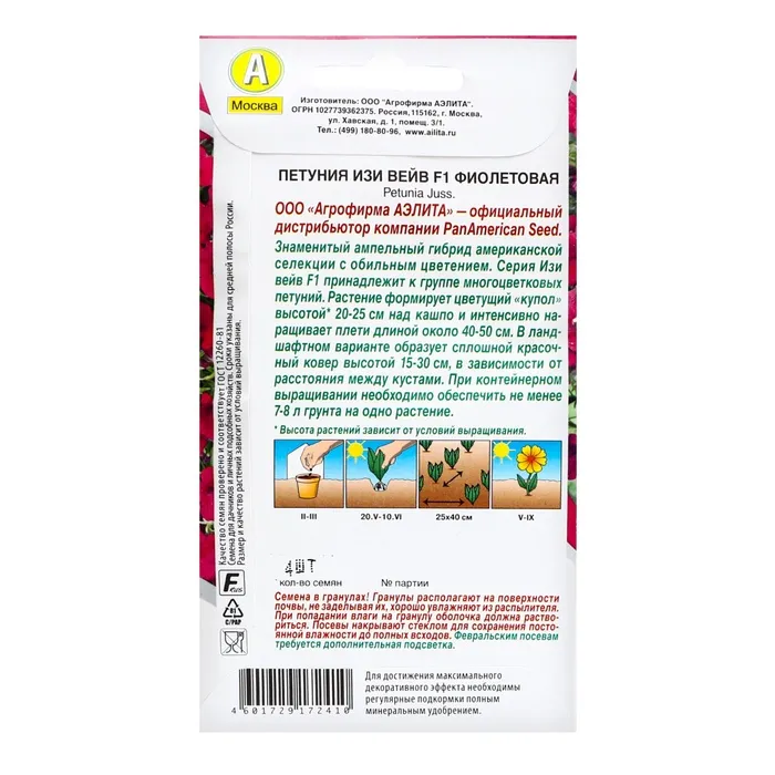 Семена цветов Петуния "Изи вейв" фиолетовая F1, ц/п, 4 шт — Характеристики