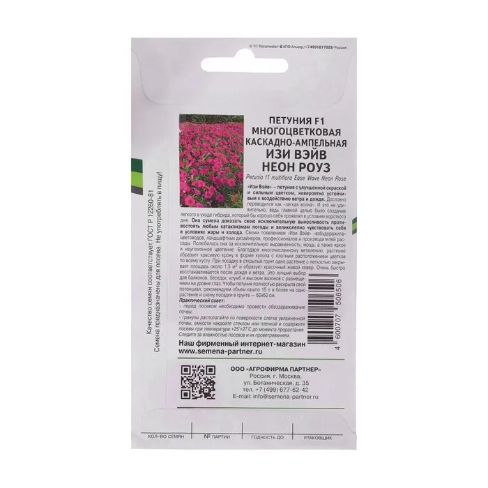 Петуния с улучшенной окраской и сильным цветком, невероятно устойчивым к воздействию ветра и дождя. Дословно переводится как «легкая волна». И это не удивительно, ведь главной целью было создание легкого в уходе гибрида, который бы хорошо себя проявлял в условиях короткого дня. Она сумела доказать свою исключительную выносливость противостоять любым катаклизмам погоды и великолепно чувствовать себя в условиях жары и холода. Своим появлением «Изи Вэйв» «взбудоражила» цветоводов, ландшафтных дизайнеров, профессионалов и производителей рассады. Полюбилась она за исключительную выравненность, мощь, а также яркое и неугомонное цветение. Благодаря многочисленному ветвлению, растение образует красивую крону в форме купола с плотным расположением цветков по всему кусту. При посадке в открытый грунт одно растение с легкостью закрывает площадь около 1,5 м² и образует красочный живой ковер. Очень быстро восстанавливается после дождя и ветра. Это лучший выбор для балконов, беседок, клумб и высоких вазонов с размещением на уровне глаз. Чтобы петуния полностью раскрыла свой потенциал, рекомендуем объем кашпо 15 л и более на одно растение и схему посадки в грунте – 60х60 см.