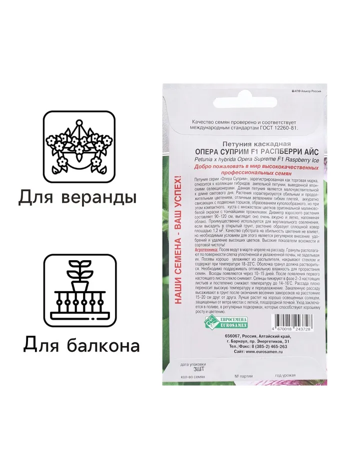 Растения характеризуются обильным и продолжительным цветением, отличным ветвлением гибких плетей, аккуратно свисающих с подвесных горшков, образованием куполообразного, но при этом компактного, куста с множеством цветков оригинальной малиново-белой окраски с тончайшими прожилками.