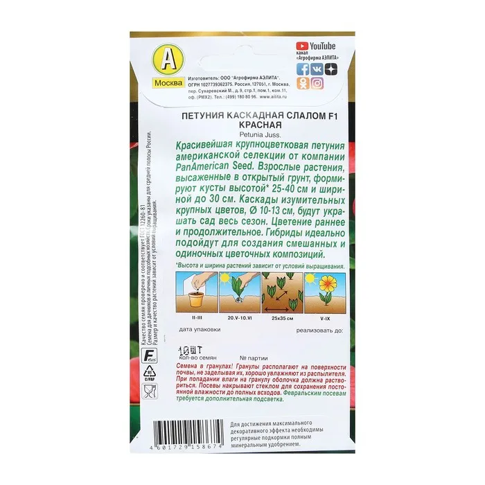 Семена Цветов Петуния "Каскадная слалом", F1, красная, 10 шт — Характеристики