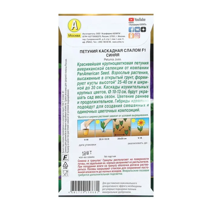 Семена Цветов Петуния "Каскадная слалом", F1, синяя, 7 шт — Характеристики