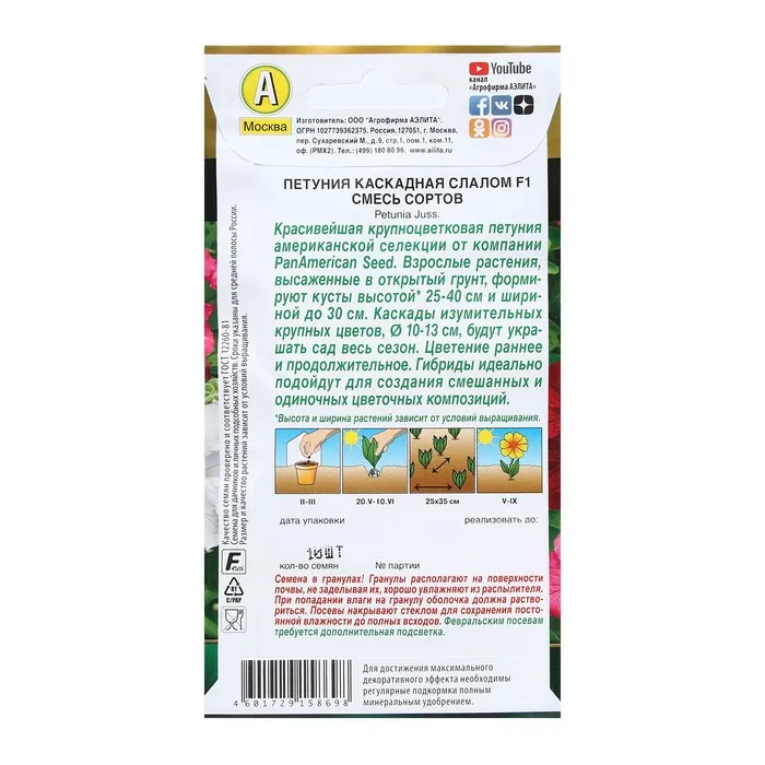 Семена Цветов Петуния "Каскадная слалом", F1, смесь сортов, 10 шт — Характеристики