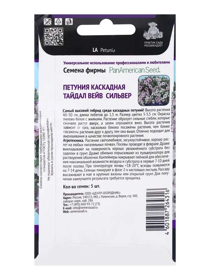 Семена цветов Петуния каскадная Тайдал Вейв Сильвер, 5шт — Характеристики