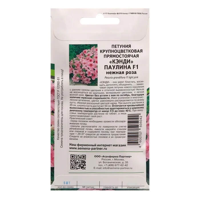 «КЭНДИ» – невероятно заманчивая серия петунии нового поколения с ранним сроком цветения и отличной выравненностью! Нельзя не восхищаться ее крупными, велюровыми цветками с легкой волной края. Цветет без устали с мая по октябрь, благодаря наличию мужской стерильности. Имея усиленное и многочисленное ветвление, цветки равномерно распределяются по всему кусту, образуя роскошный цветочный шар. Отличается чрезвычайной выносливостью и способностью адаптироваться к широкому диапазону температур от -5°С до +40°С. При минусовых температурах растение не гибнет, а лишь замедляет свой рост. Ширина куста 50 см, высота растения 20 см, диаметр цветка 12 см. Чтобы петуния полностью раскрыла свой потенциал, рекомендуем объем кашпо 7-10 л на одно растение и схему посадки в грунте – 35х35 см.