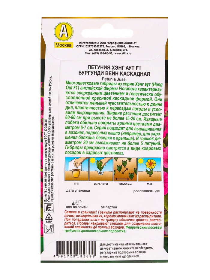 Семена цветов Петуния Хэнг аут F1 бургунди вейн каскадная (драже) С. Floranova , Ц/П,4 шт. — Характеристики