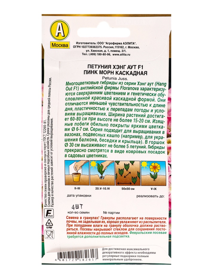 Семена цветов Петуния Хэнг аут F1 пинк морн каскадная (драже) С. Floranova , Ц/П,4 шт. — Характеристики