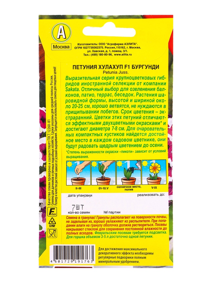 Семена цветов Петуния Хулахуп F1 бургунди (драже) С. Sakata Цветущий балкон, Ц/П,7 шт. — Характеристики