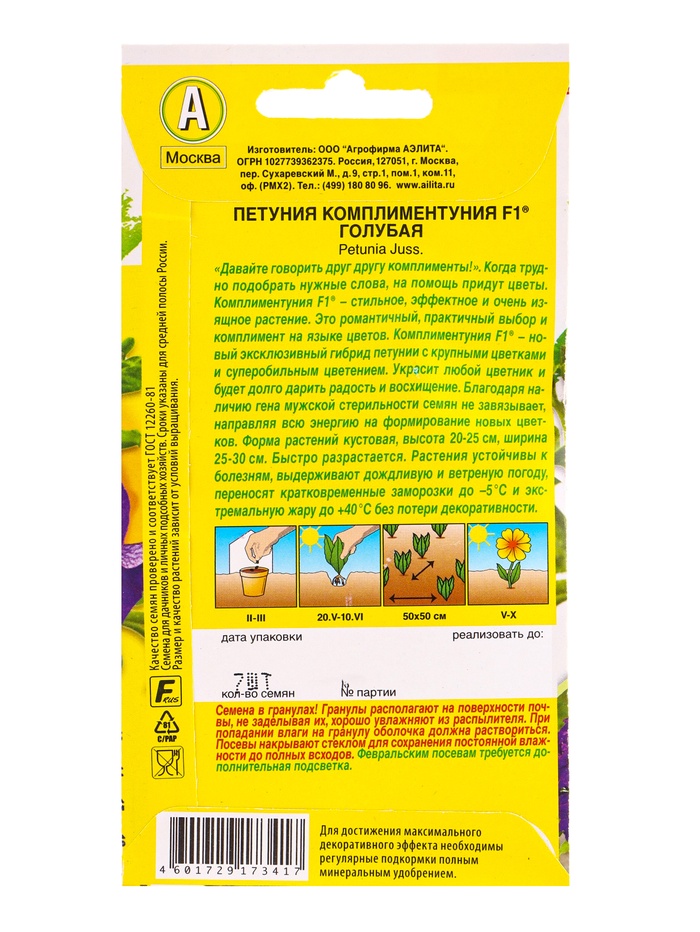 Семена цветов Петуния Комплиментуния F1 голубая крупноцветковая (драже в пробирке), Ц/П,7 шт. 10945 — Характеристики