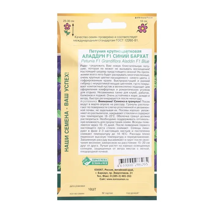 На протяжении всего лета будет раскрывать многочисленные, бархатистые, очень крупные цветки насыщенного cинего цвета, с гофрированным краем.