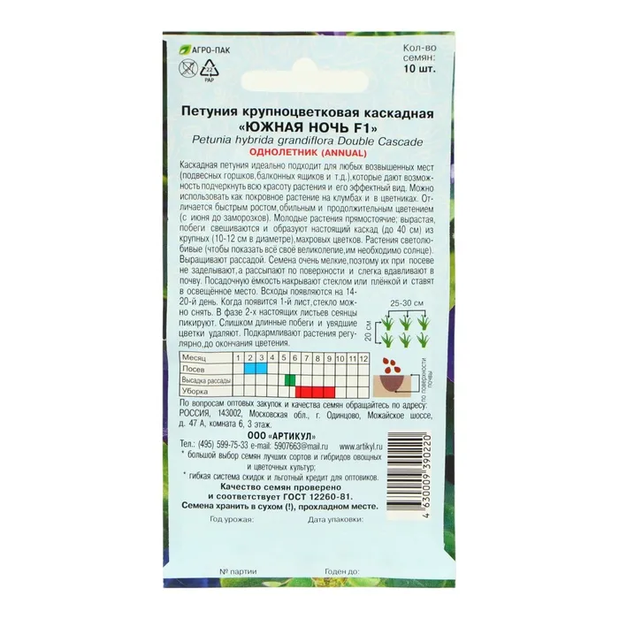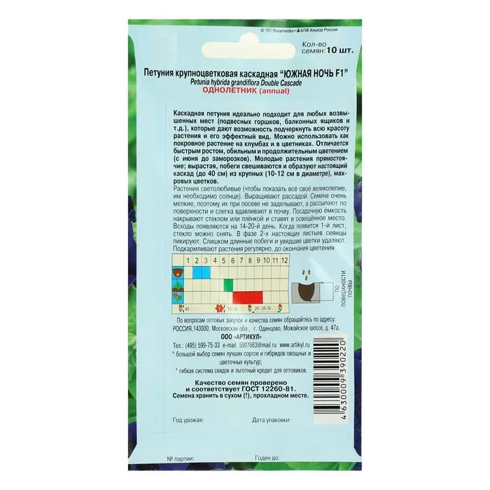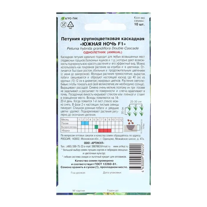 Семена цветов Петуния крупноцветковая махровая «Южная ночь» F1, О, 10 шт. — Характеристики