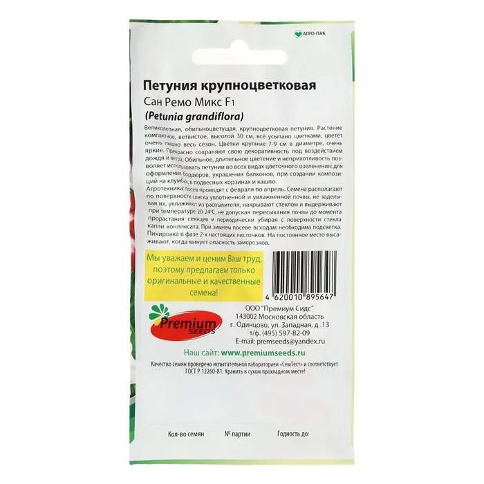 Великолепная, обильно-цветущая, крупноцветковая, петуния. Растение компактное, ветвистое, высотой 30 см, всё усыпано цветками, цветёт очень пышно весь сезон. Цветки крупные 7-9 см в диаметре, очень яркие. Прекрасно сохраняют свою декоративность под воздействием дождя и ветра. Обильное, длительное цветение и неприхотливость позволяет использовать петунии во всех видах цветочного озеленения: для оформления бордюров, украшения балконов, при создании композиций на клумбах, в подвесных корзинах и кашпо.