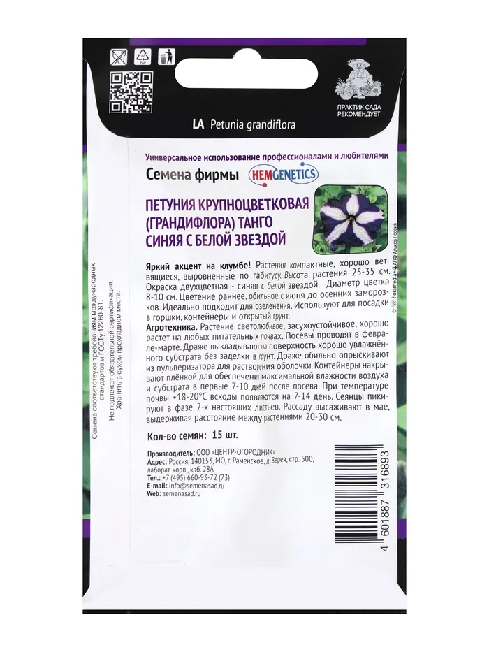 Семена цветов Петуния крупноцветковая Танго Синяя с белой звездой, 15шт — Характеристики