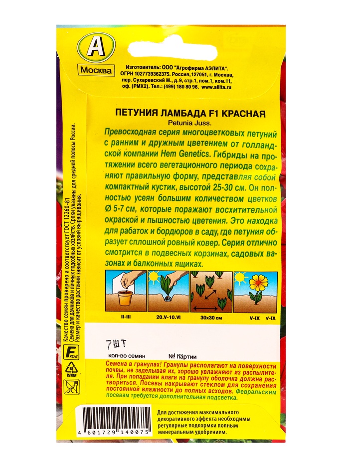 Семена цветов Петуния Ламбада F1 красная многоцветковая (драже) С. Hem Genetics, Ц/П,7 шт. — Характеристики
