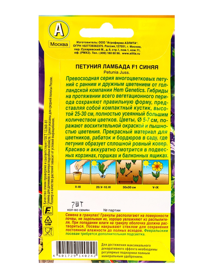 Семена цветов Петуния Ламбада F1 синяя многоцветковая (драже) С. Hem Genetics, Ц/П,7 шт. — Характеристики