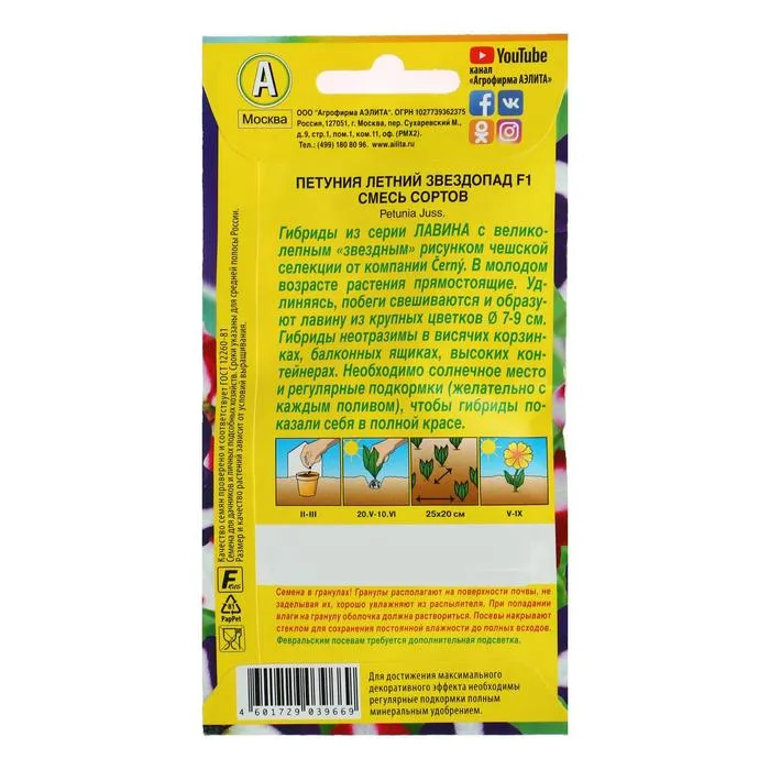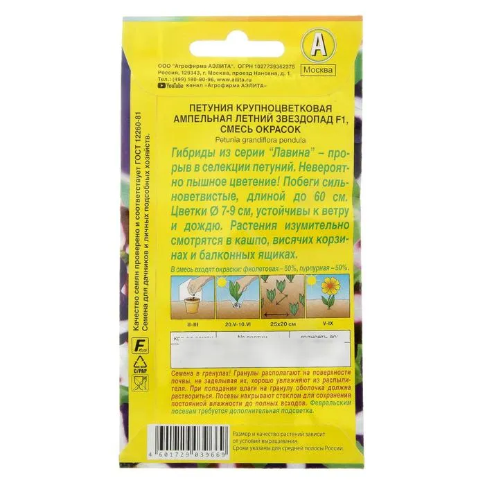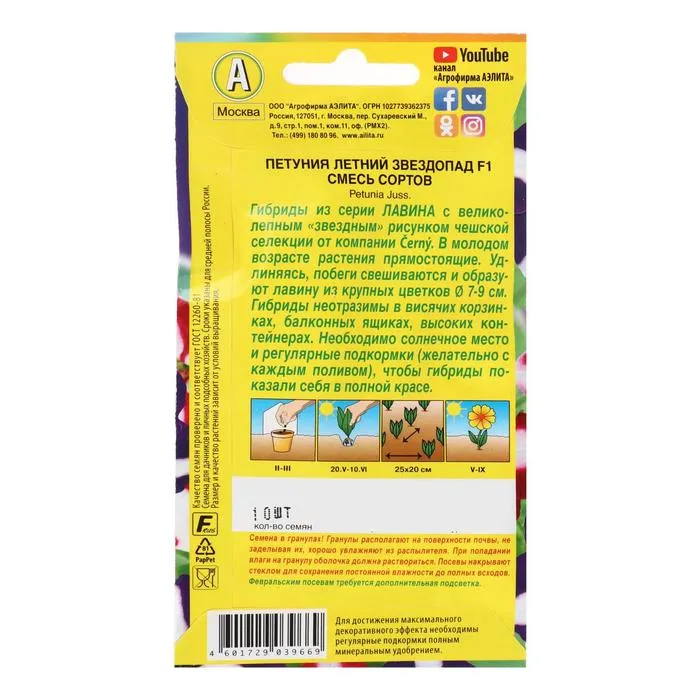 Семена цветов Петуния "Летний звездопад F1" ампельная, смесь окрасок, О, 10 шт — Характеристики