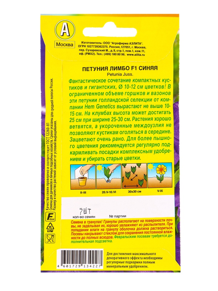 Семена цветов Петуния Лимбо F1 синяя крупноцветковая (драже) С. Hem Genetics, Ц/П,7 шт. — Характеристики