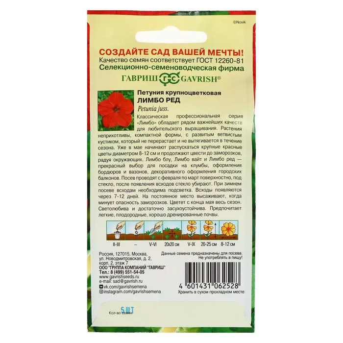 Семена цветов Петуния "Лимбо Ред", ц/пкрупноцветковая, серия Элитная клумба, гранулы, 5 шт — Характеристики