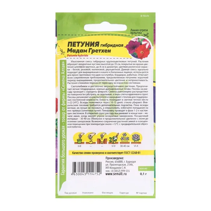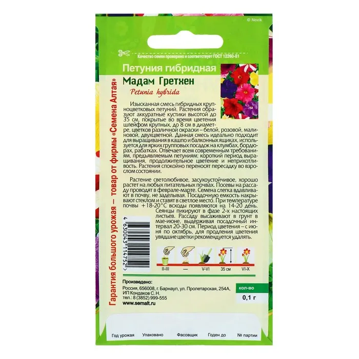 Растения образуют аккуратные кустики высотой 30-35 см, покрытые шлейфом крупных, до 8 см в диаметре, цветков различной окраски. Идеально подходит для выращивания на клумбах, в кашпо и балконных ящиках. Спокойно переносит пересадку во взрослом состоянии. Отвечает всем современным требованиям, предъявляемым к петуниям: короткий период выращивания, продолжительное цветение и неприхотливость. Семена на рассаду сеют с конца февраля, не заделывая землей, а просто накрывая ящики стеклом. Пока всходы мелкие, их лучше не поливать, а опрыскивать. На открытом воздухе продолжают выращивание с конца мая. Возможно сохранение растений в зимний период в комнатных условиях.
