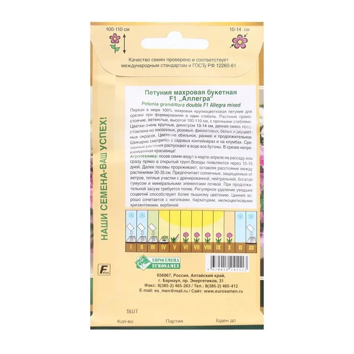 Первая в мире 100% махровая крупноцветковая петуния для срезки при формировании в один стебель. Растения прямостоячие, ветвистые, высотой 100-110 см, с прочными стеблями. Цветки очень крупные, диметром 10-14 см, данная смесь представлена из лососевых, розовых, фиолетовых, белых и двуцветных окрасок. Цветение обильное, раннее и продолжительное. Шикарно смотрится в садовых контейнерах и на клумбах. Срезанные растения распускают в воде все бутоны. В срезке непревзойденная красавица.