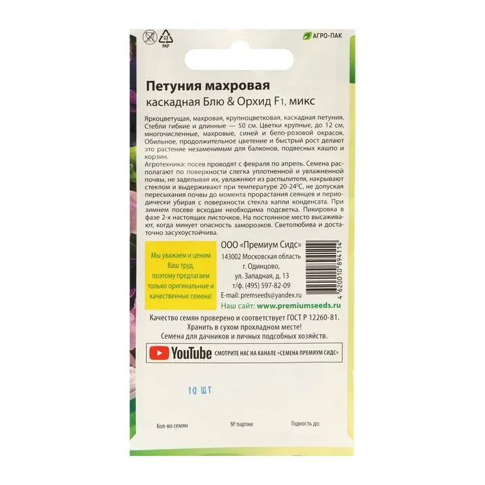 Семена цветов Петуния Махровая Каскадная Блю&Орхид F1,набор 5 шт — Характеристики