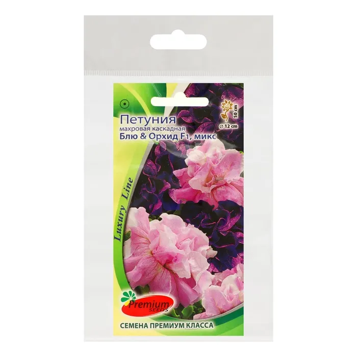 «Блю & Орхид» — это яркая каскадная петуния. Растение высотой 50 см имеет гибкие длинные стебли и крупные махровые бутоны синей и бело-розовой окраски. Обильное, продолжительное цветение и быстрое развитие делают это светолюбивое и засухоустойчивое растение отличным декоративным элементом для балконов, подвесных кашпо и корзин. h2>Агротехника h2>Посев проводится с февраля по апрель. Семена располагают по поверхности слегка увлажнённой почвы, не заделывают, увлажняют распылителем, накрывают стеклом и содержат при температуре 18–20 °С. Всходы появляются через 10–15 дней. Пикировка осуществляется в фазе 1–2 настоящих листьев. На постоянное место высаживают, когда минует угроза заморозков, на расстоянии 15–20 см.