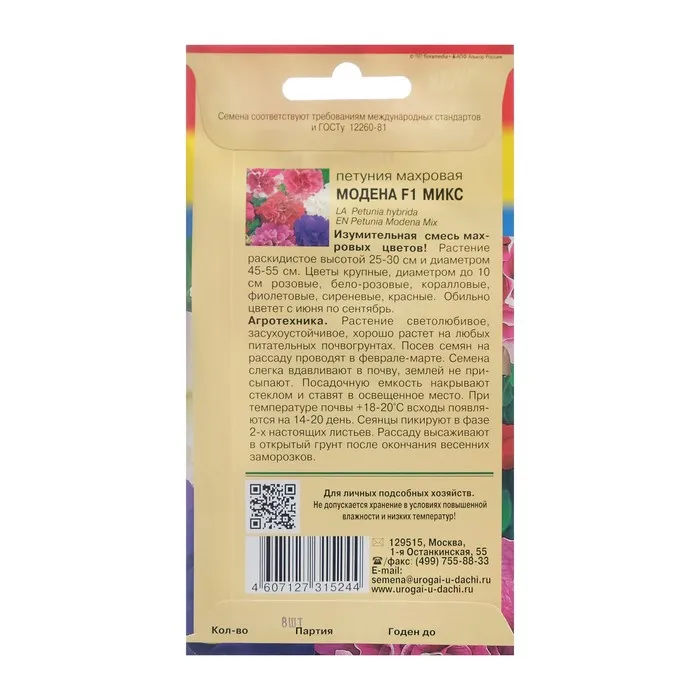 Растение раскидистое высотой 25-30 см и диаметром 45-55 см. Цветы крупные, диаметром до 10 см розовые, бело-розовые, коралловые, фиолетовые, сиреневые, красные. Обильно цветет с июня по сентябрь.