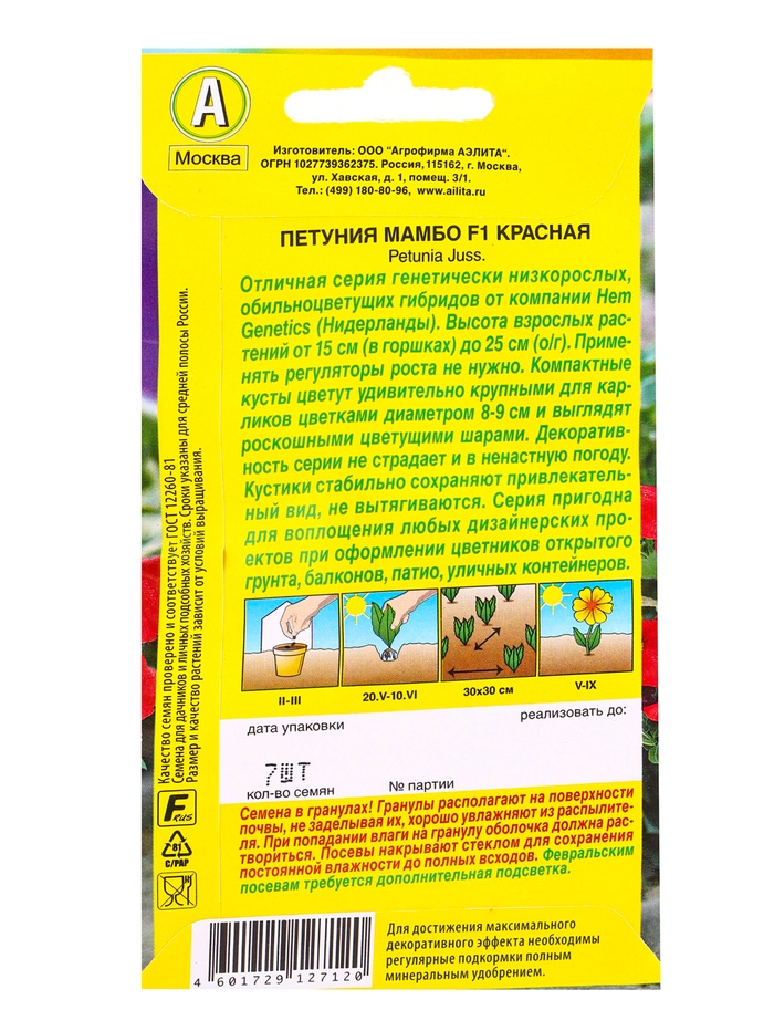 Семена цветов Петуния Мамбо F1 красная многоцветковая (драже) С. Hem Genetics, Ц/П,7 шт. — Характеристики