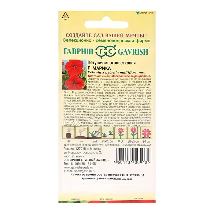 Образует компактный куст высотой 30-35 см. Цветки красные 5,5-6,5 см в диаметре с гладким краем лепестков. Выращивают рассадным способом. Посев проводят с января по апрель, поверхностно, под стекло (после появления всходов стекло убирают). В зимние месяцы январь-февраль досветка обязательна. При ранних сроках посева цветение начинается в мае, что очень удобно для выращивания растений на балконе, закрытых террасах, патио. Без дополнительного освещения петунию высевают не раньше марта. Всходы появляются через 7-12 дней. На постоянное место высаживают, когда минует опасность заморозков. Светолюбива и достаточно засухоустойчива. Предпочитает легкие, плодородные, хорошо дренированные почвы. Петунии можно выращивать в течение нескольких лет, сохраняя зимой в освещенном помещении (растение сильно обрезают, t не более 12°C, умеренный полив). Петуния используется как фоновое и балконное растение, в контейнерах, вазах, для украшения подоконников, для посадки в рабатки, бордюры. Цветет обильно с начала мая до заморозков. Быстро восстанавливает декоративность после сильного дождя.