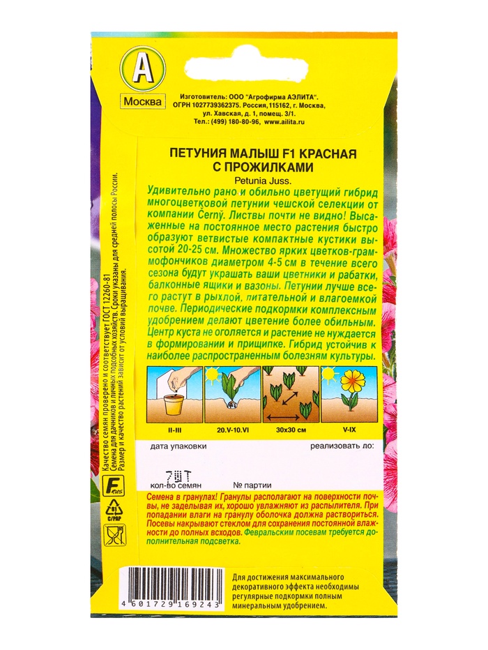 Семена цветов Петуния мини Малыш F1 красная с прожилками многоцветковая (драже) С. Cerny, Ц/П,7 шт. — Характеристики