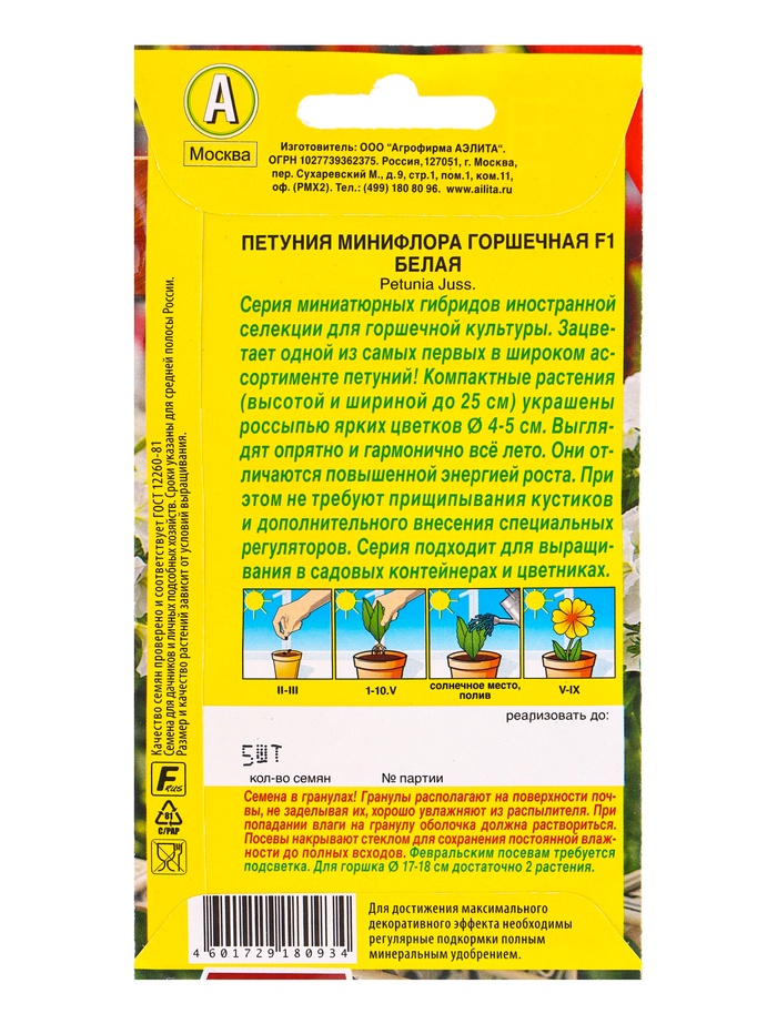 Семена цветов Петуния Минифлора горшечная F1 белая (драже в пробирке) Цветущий балкон, Ц/П,5 шт. 10 — Характеристики