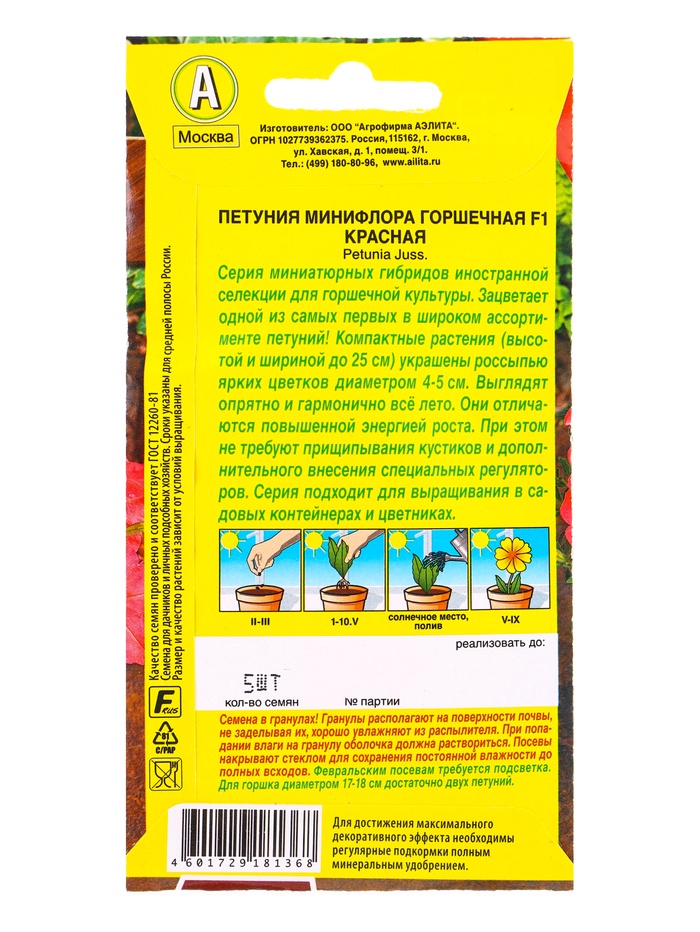 Семена цветов Петуния Минифлора горшечная F1 красная (драже) Цветущий балкон, Ц/П,5 шт. — Характеристики