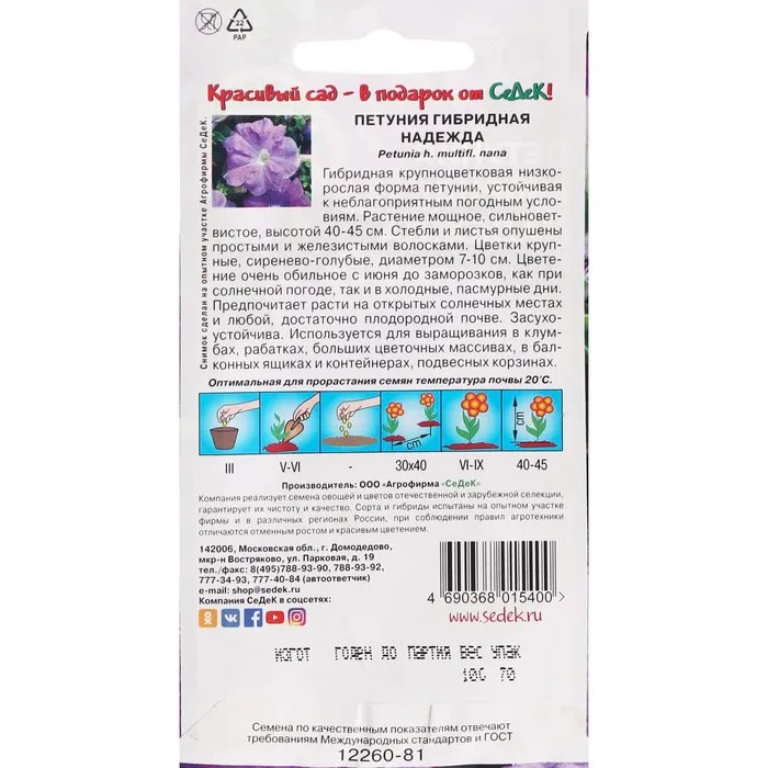 Семена цветов Петуния "Надежда "1 г — Характеристики