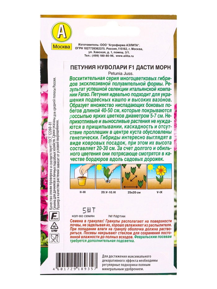 Семена цветов Петуния Нуволари F1 полуампельная дасти морн (драже) С. Farao , Ц/П,5 шт. — Характеристики