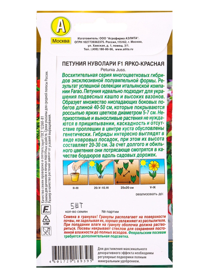 Семена цветов Петуния Нуволари F1 полуампельная ярко-красная (драже) С. Farao , Ц/П,5 шт. — Характеристики