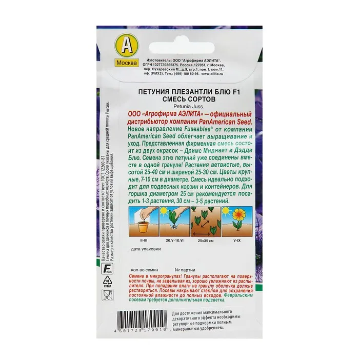 Семена Цветов Петуния "Плезантли Блю", F1, смесь сортов, драже в пробирке, 3 шт — Характеристики