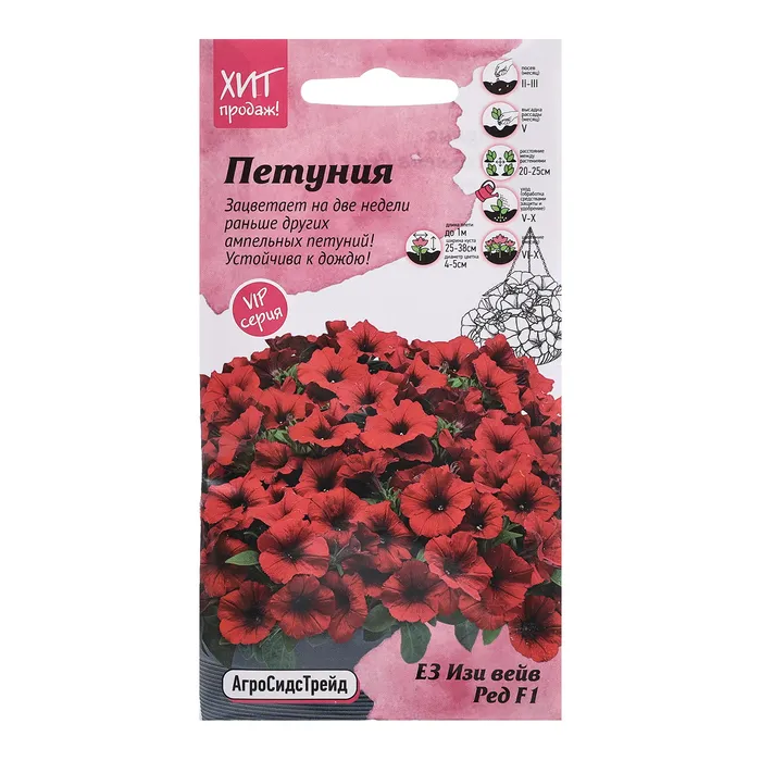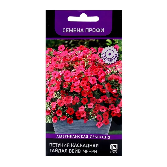 Растение компактное, высотой 35 см. Цветки очень крупные, диаметром 12 см, густомахровые, эффектной окраски – пурпурной с белой каймой. Цветение продолжительное, обильное. Гибрид устойчив к неблагоприятным условиям произрастания. Используется для оформления клумб, вазонов, кашпо и балконных ящиков. Агротехника: Семена покрыты оболочкой! Петуния – мелкосемянная культура, требовательная к условиям выращивания. Посев на рассаду в феврале-марте. Гранулы располагают на поверхности субстрата, не засыпая их почвой, а лишь слегка прижимают и накрывают стеклом или пленкой. Для прорастания семян необходимо хорошее освещение и температура 20-24˚С. Полив производят из опрыскивателя. Всходы появляются на 10-15 день. После появления первого настоящего листа всходы проветривают, периодически снимая стекло и убирая конденсат влаги. Температуру постепенно снижают до 14-16˚С и следят, чтобы не было переувлажнения субстрата. Закаленную рассаду высаживают в грунт по схеме 15×20 см. В дальнейшем уход заключается в рыхлении, поливе и подкормах.