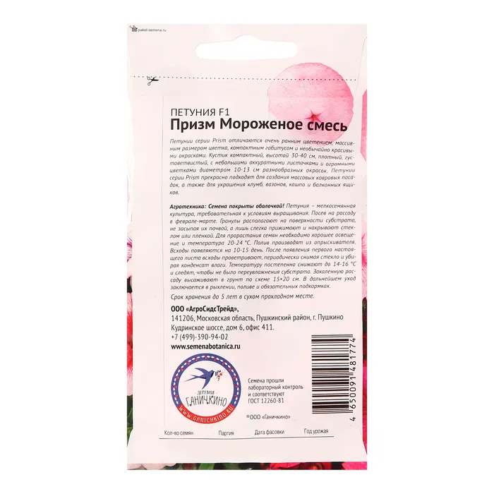 Семена цветов Петуния "Призм Мороженое смесь F1", 10 шт — Характеристики