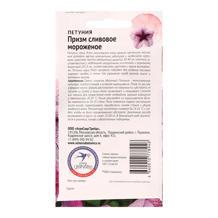 Семена цветов Петуния «Призм Сливовое мороженое», F1, 10 шт., «Агросидстрейд» — Характеристики
