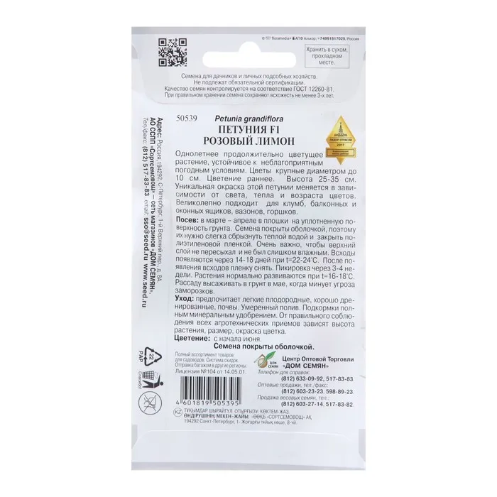 Семена цветов Петуния "Розовый лимон кр/цвет", 7 шт — Характеристики