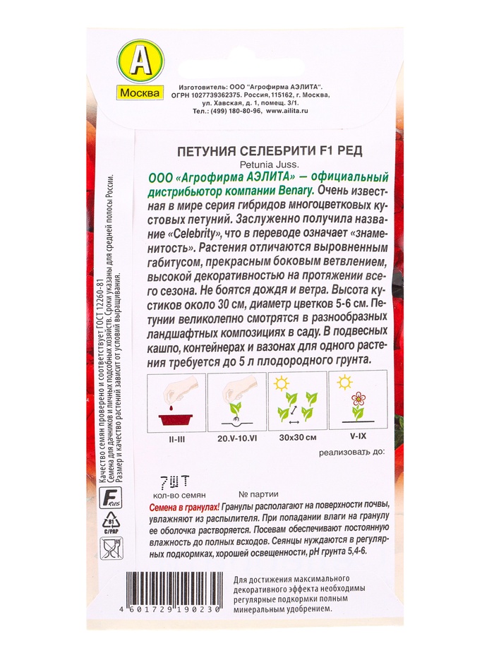 Семена цветов Петуния «Селебрити», F1, красная, многоцветковая, драже, Benary, 7 шт. — Характеристики