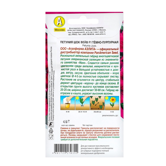 Семена цветов Петуния "Шок вейв" F1 темно-пурпурная, ц/п, 4 шт — Характеристики