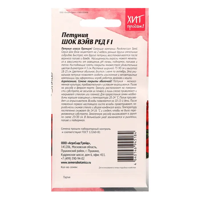 Семена цветов Петуния "Шок Вэйв Ред F1", 5 шт — Характеристики