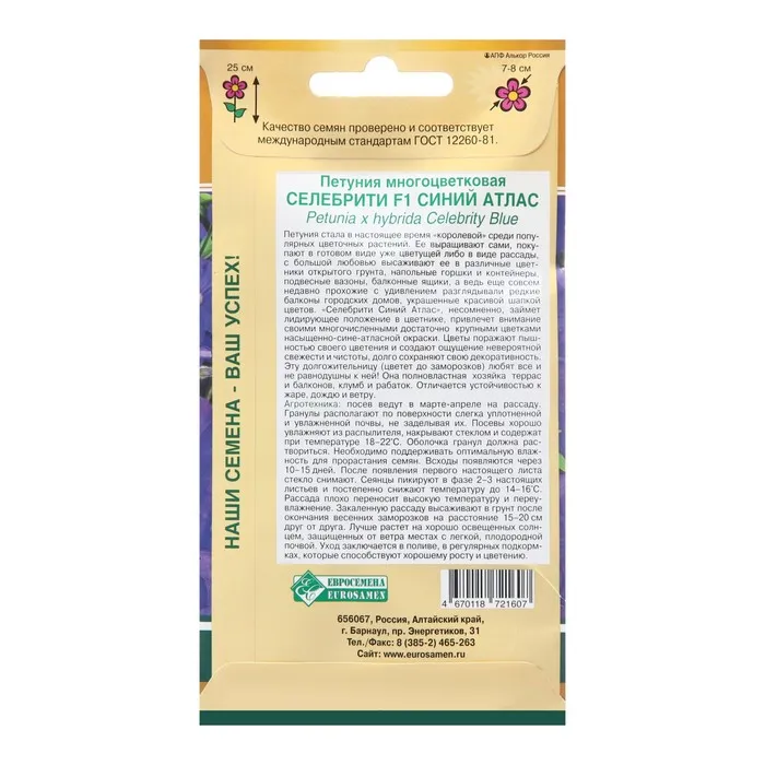 Семена цветов Петуния "Синий Атлас", 10 шт — Характеристики
