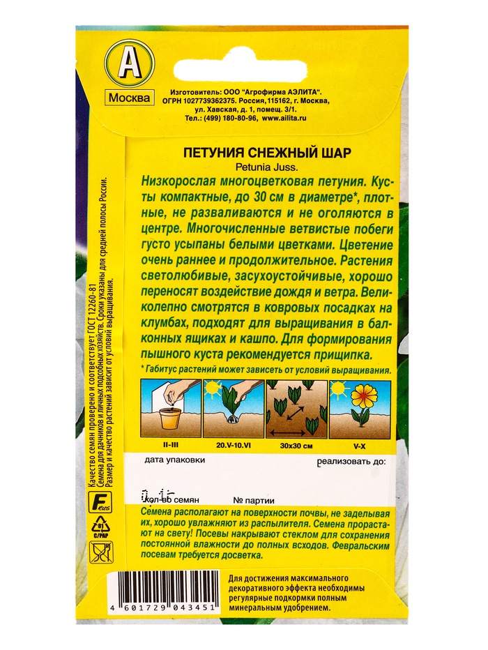 Семена цветов Петуния «Снежный шар», многоцветковая, 0.1 г, «Агрофирма АЭЛИТА» — Характеристики