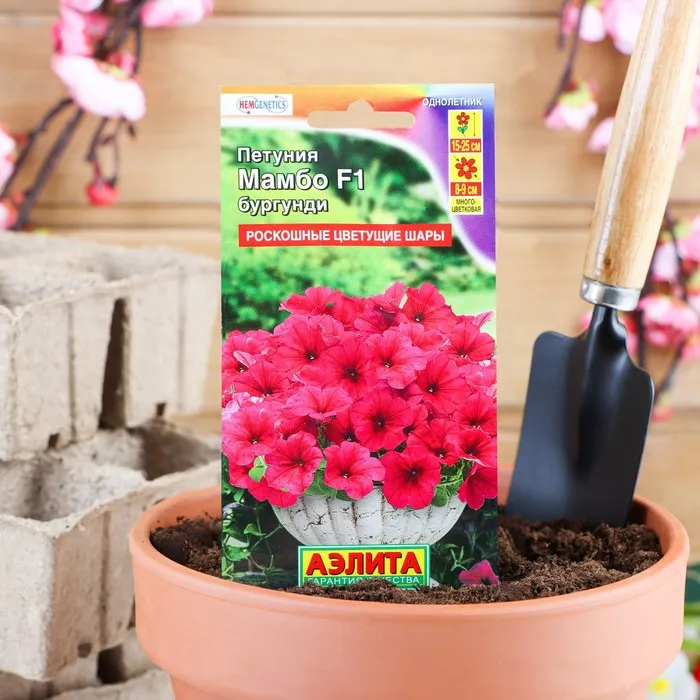 Петуния класса Премиум! Формирует очень плотные, сильноразветвленные кустики высотой 25-38 см и диаметром 25-30 см, обильно усыпанные крупными цветками мерцающего черного цвета с красновато-фиолетовыми оттенками. Диаметр цветка 8-10 см. Цветение обильное, длится с июня по октябрь. Этот уникальный гибрид позволяет создать изысканные и неповторимые композиции при оформлении клумб, рабаток, вазонов и кашпо. Агротехника: Семена покрыты оболочкой! Петуния – мелкосемянная культура, требовательная к условиям выращивания. Посев на рассаду в феврале-марте. Гранулы располагают на поверхности субстрата, не засыпая их почвой, а лишь слегка прижимают и накрывают стеклом или пленкой. Для прорастания семян необходимо хорошее освещение и температура 20-24˚С. Полив производят из опрыскивателя. Всходы появляются на 10-15 день. После появления первого настоящего листа всходы проветривают, периодически снимая стекло и убирая конденсат влаги. Температуру постепенно снижают до 14-16˚С и следят, чтобы не было переувлажнения субстрата. Закаленную рассаду высаживают в грунт по схеме 25×30 см. В дальнейшем уход заключается в рыхлении, поливе и подкормах.