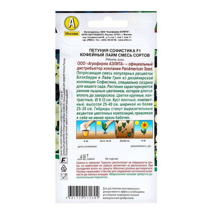 Семена цветов Петуния "Софистика" F1 кофейный лайм, смесь сортов, ц/п, 4 шт — Характеристики