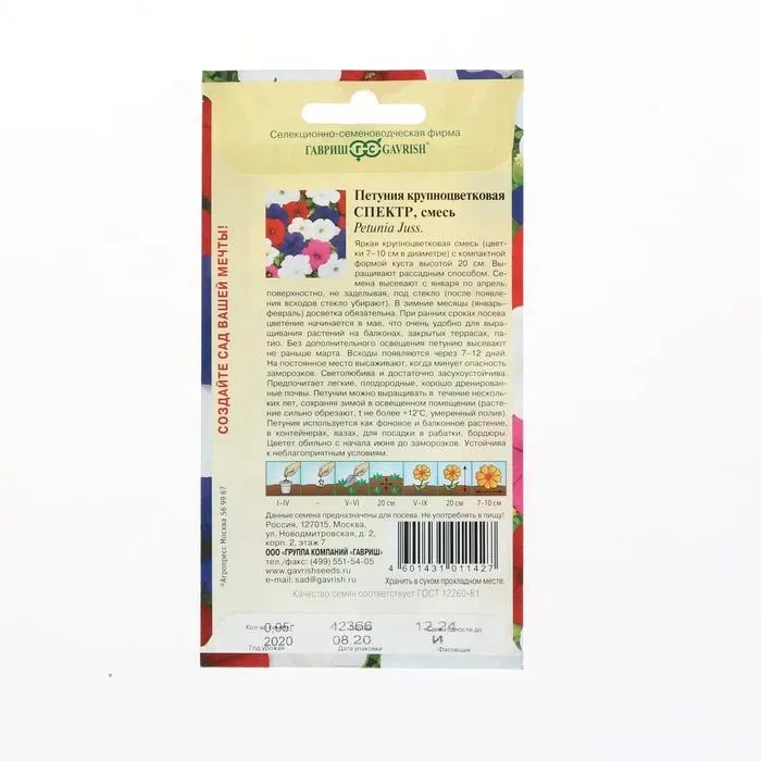 Семена цветов Петуния "Спектр" смесь крупноцветковая, О, ц/п, 0,05 г — Характеристики