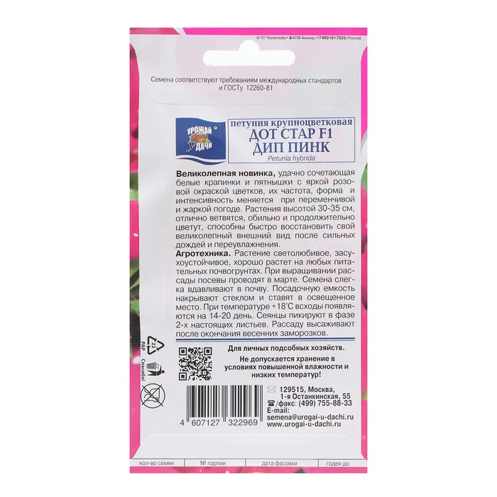 Семена цветов Петуния "Стар Дип Пинк", F1, 7шт — Характеристики