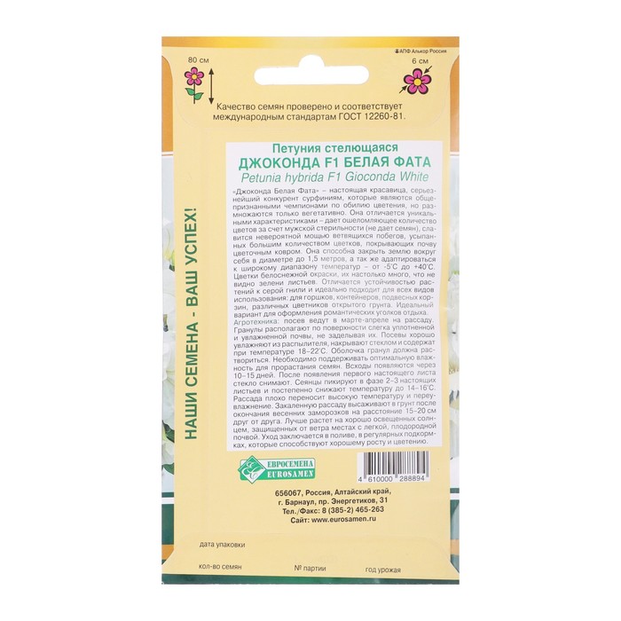 Семена цветов петуния стелющаяся джоконда F1 «Белая Фата», 5 драже — Характеристики