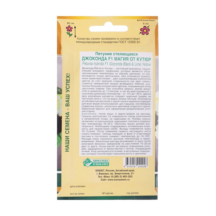 Семена Цветов Петуния стелющаяся джоконда «Магия от Кутюр», 5 шт., «Евросемена» — Характеристики